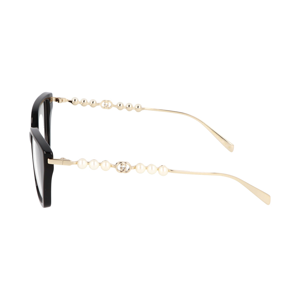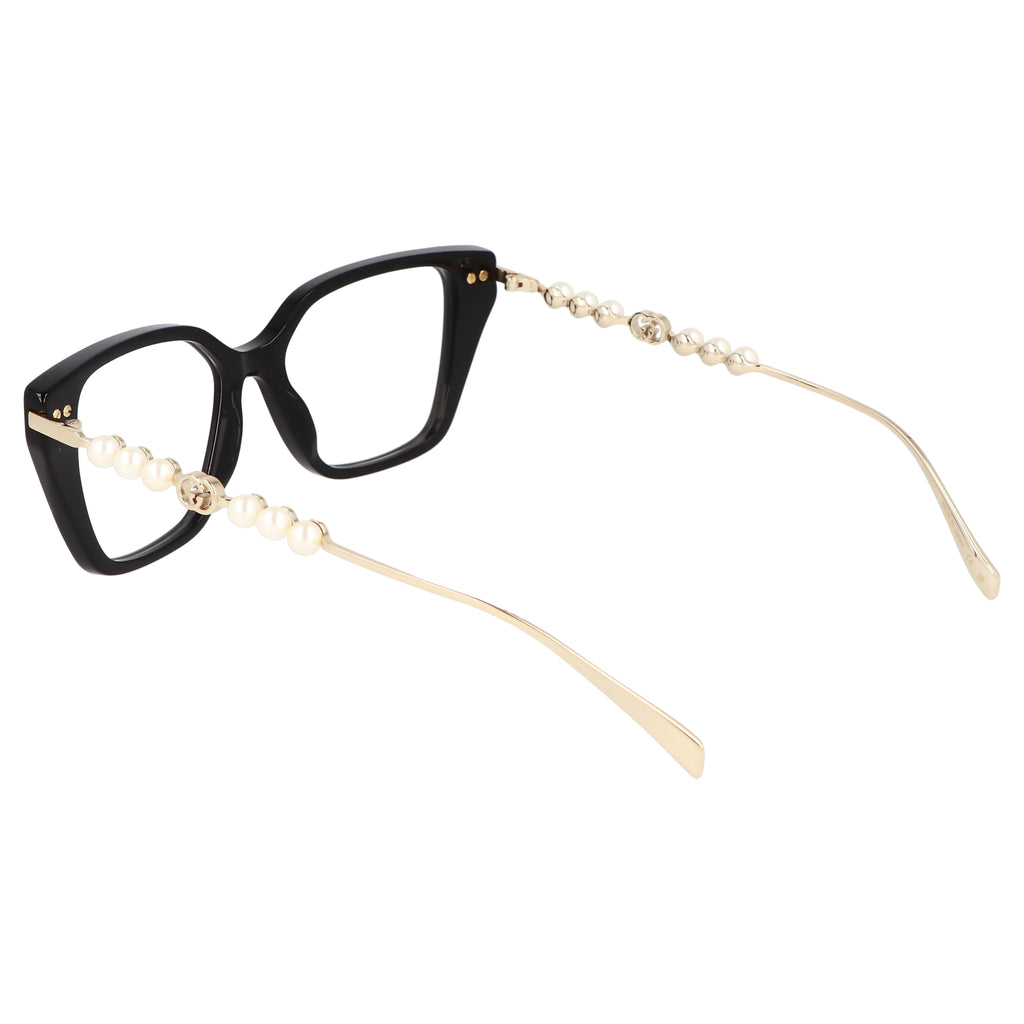 Gli occhiali da vista GUCCI GG1969O si distinguono per la montatura in acetato a forma di occhi di gatto, che conferisce un'eleganza raffinata e un tocco femminile. Le aste sono decorate con delle perle bianche ed il simbolo distintivo dello stile iconico di Gucci.