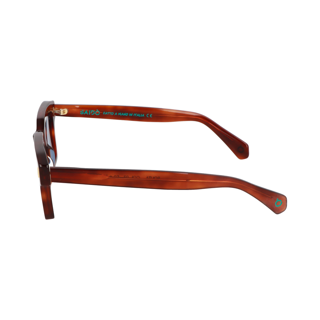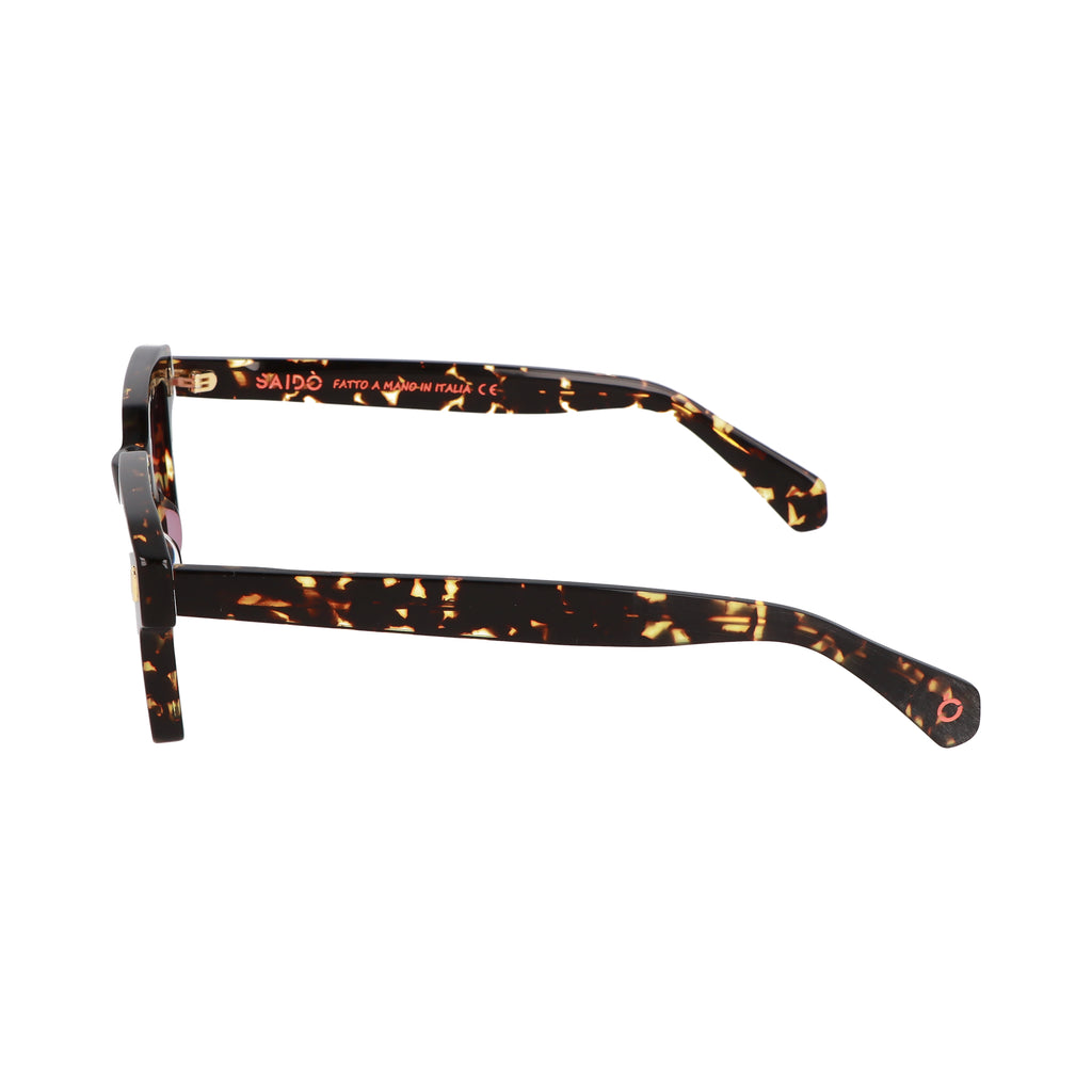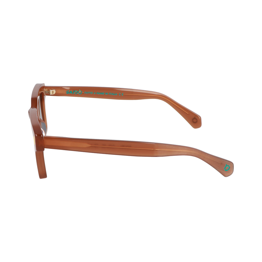 Gli occhiali da sole SOUTA di SAIDO' uniscono il carattere urbano alla funzionalità, con una montatura in acetato dalla forma squadrata che conferisce un look audace e contemporaneo. Ideali per chi cerca uno stile distintivo e moderno, questi occhiali sono realizzati per resistere alla frenesia della vita quotidiana, offrendo comfort e durabilità. Le lenti proteggono dai raggi UV, garantendo una visione chiara e sicura. Il modello Souta è l'accessorio perfetto per chi vuole esprimere la propria personalità con un tocco di stile metropolitano. Sul terminale è presente il logo del brand e una lavorazione opaca.